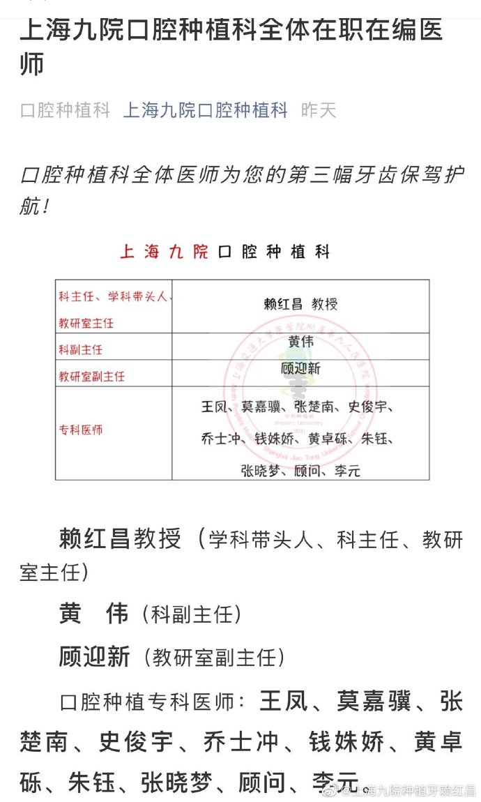 上海九院种植牙医生都有哪些专家